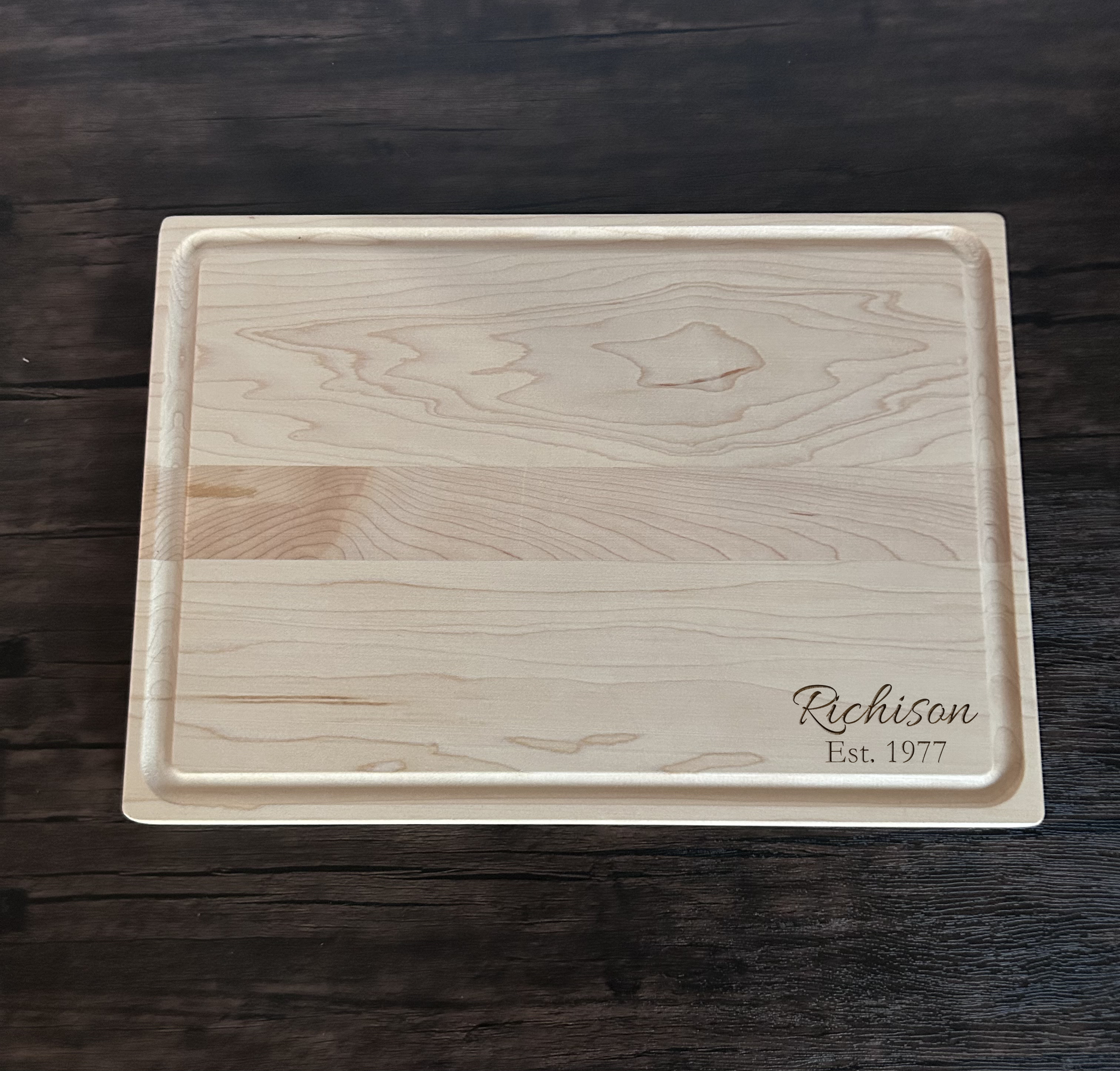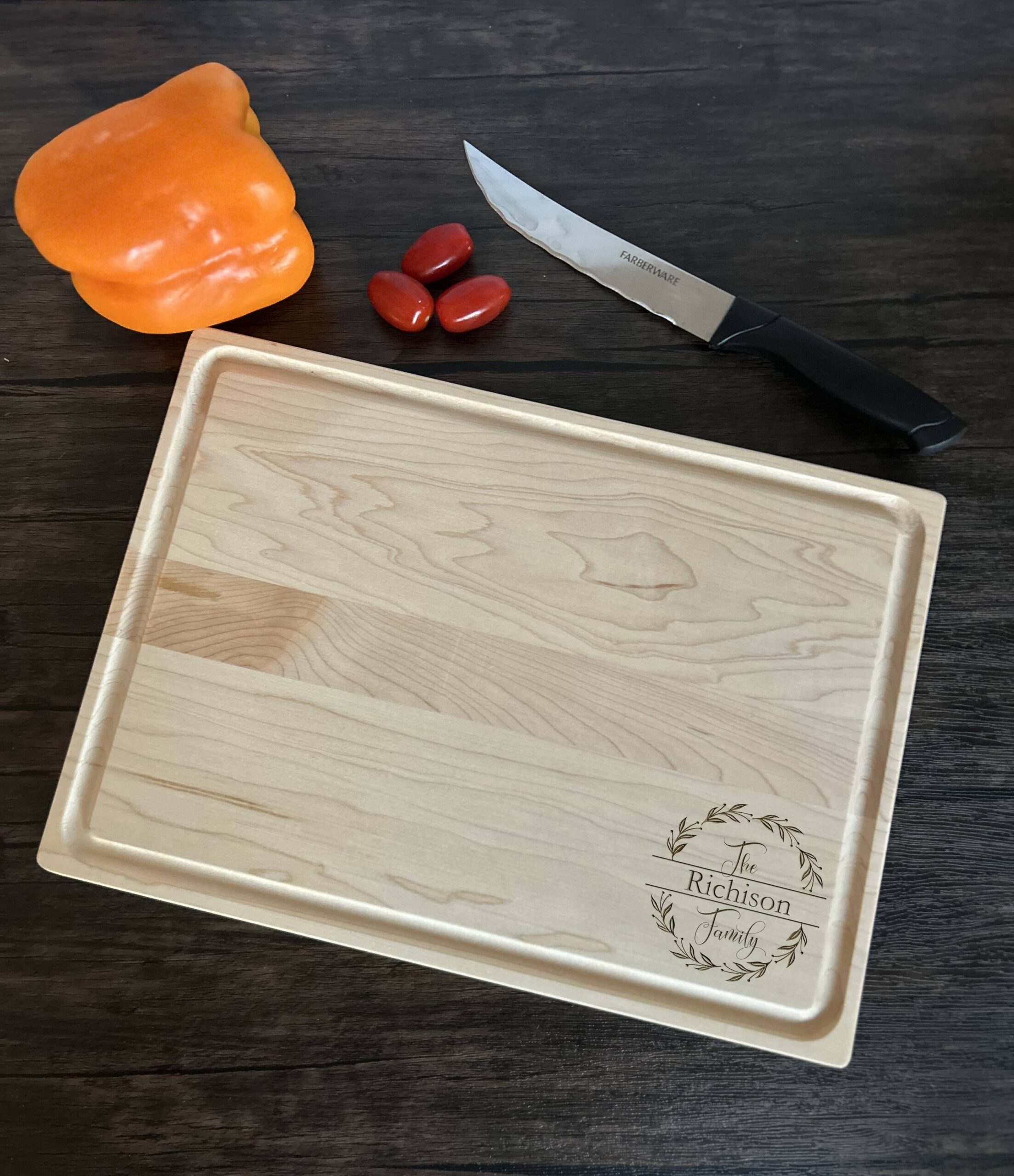 Add this practical and stylish 10″x14″ Engraved Cutting Board with Juice Groove to your kitchen for a more efficient and organized cooking experience!