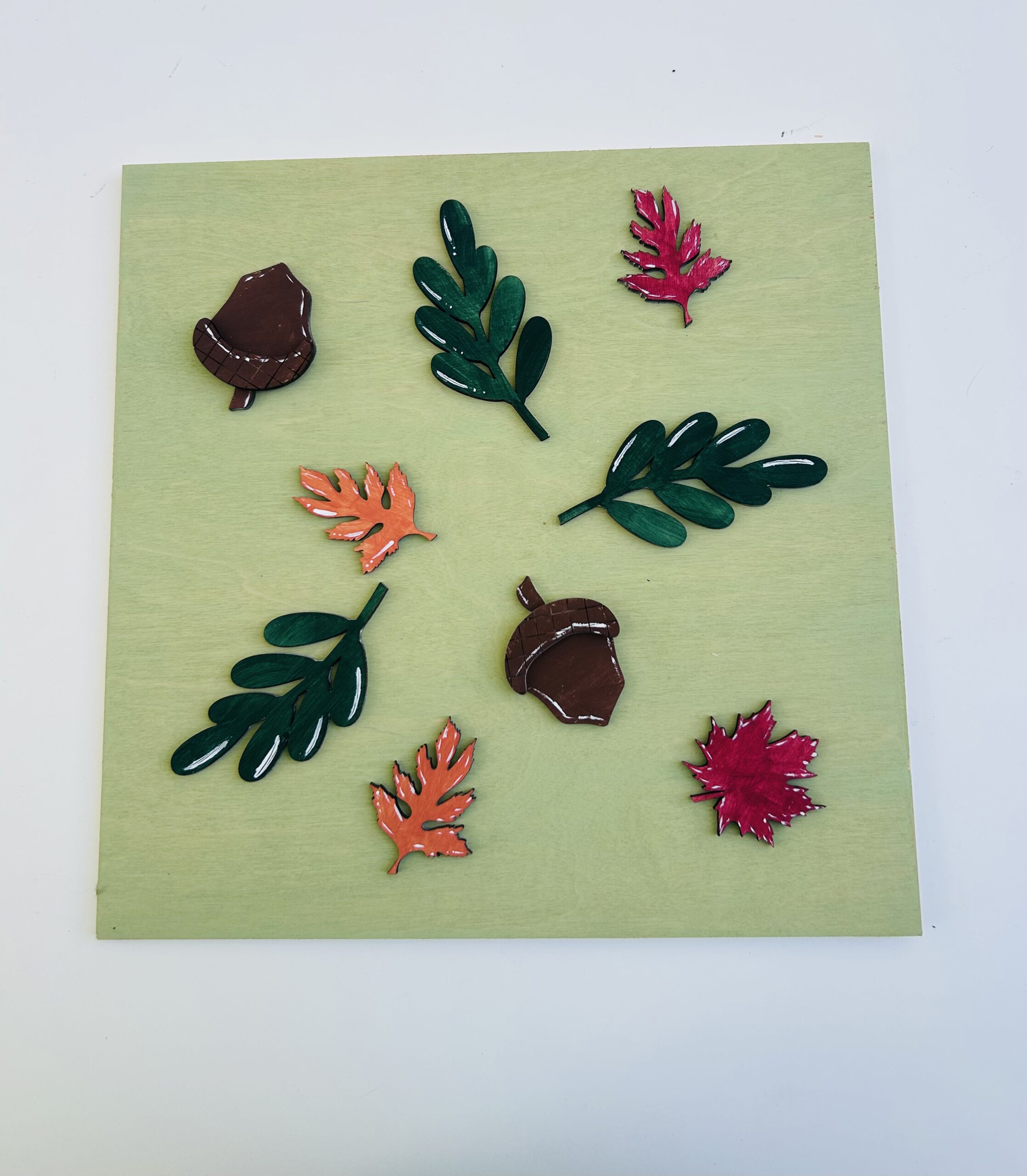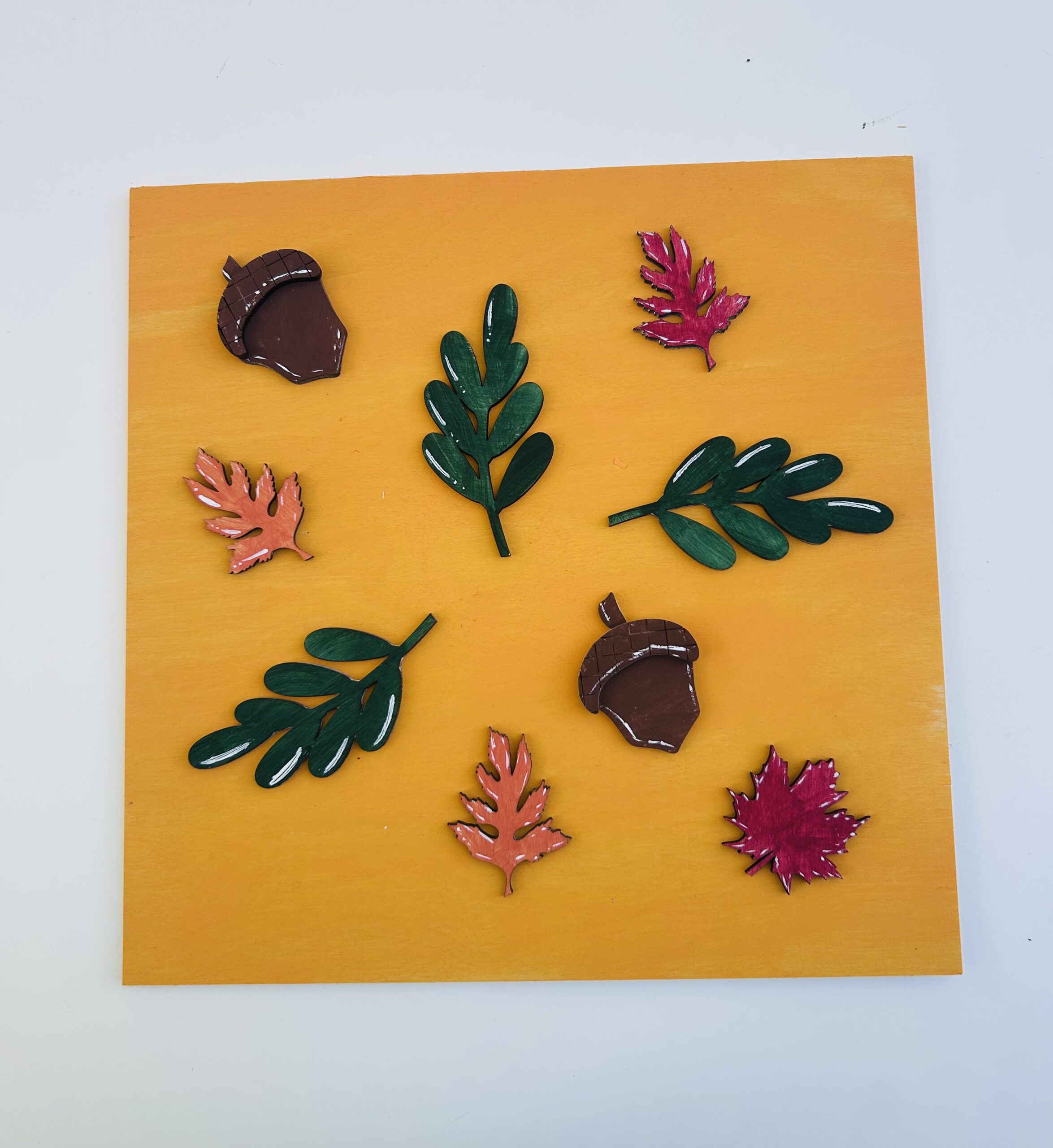 The Tiles: Laser-engraved wood sold as DIY paint kits. Each kit includes unfinished wood pieces, so you can paint and assemble your own seasonal artwork.