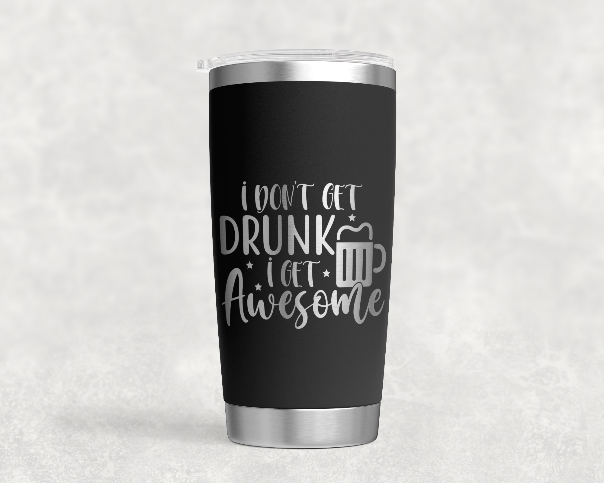 Make a statement without saying a word. This 20 oz tumbler features the unforgettable phrase “I don’t get drunk, I get awesome”—perfect for anyone who brings the fun wherever they go.