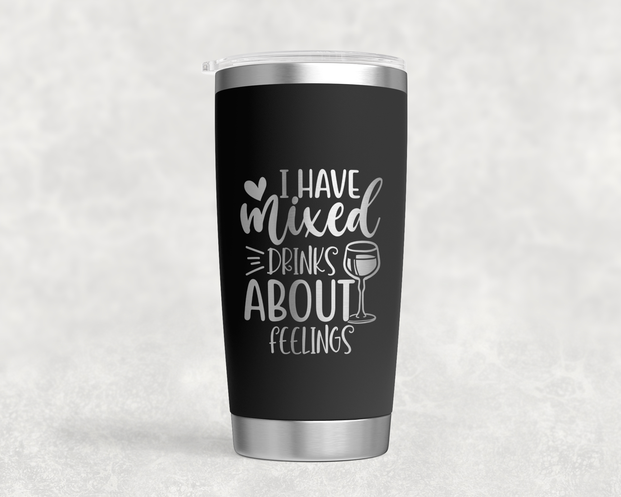 For emotional balance and strong pours. This 20 oz tumbler features the phrase “I have mixed drinks about feelings”—perfect for sipping, side-eyeing, and staying hydrated in style.