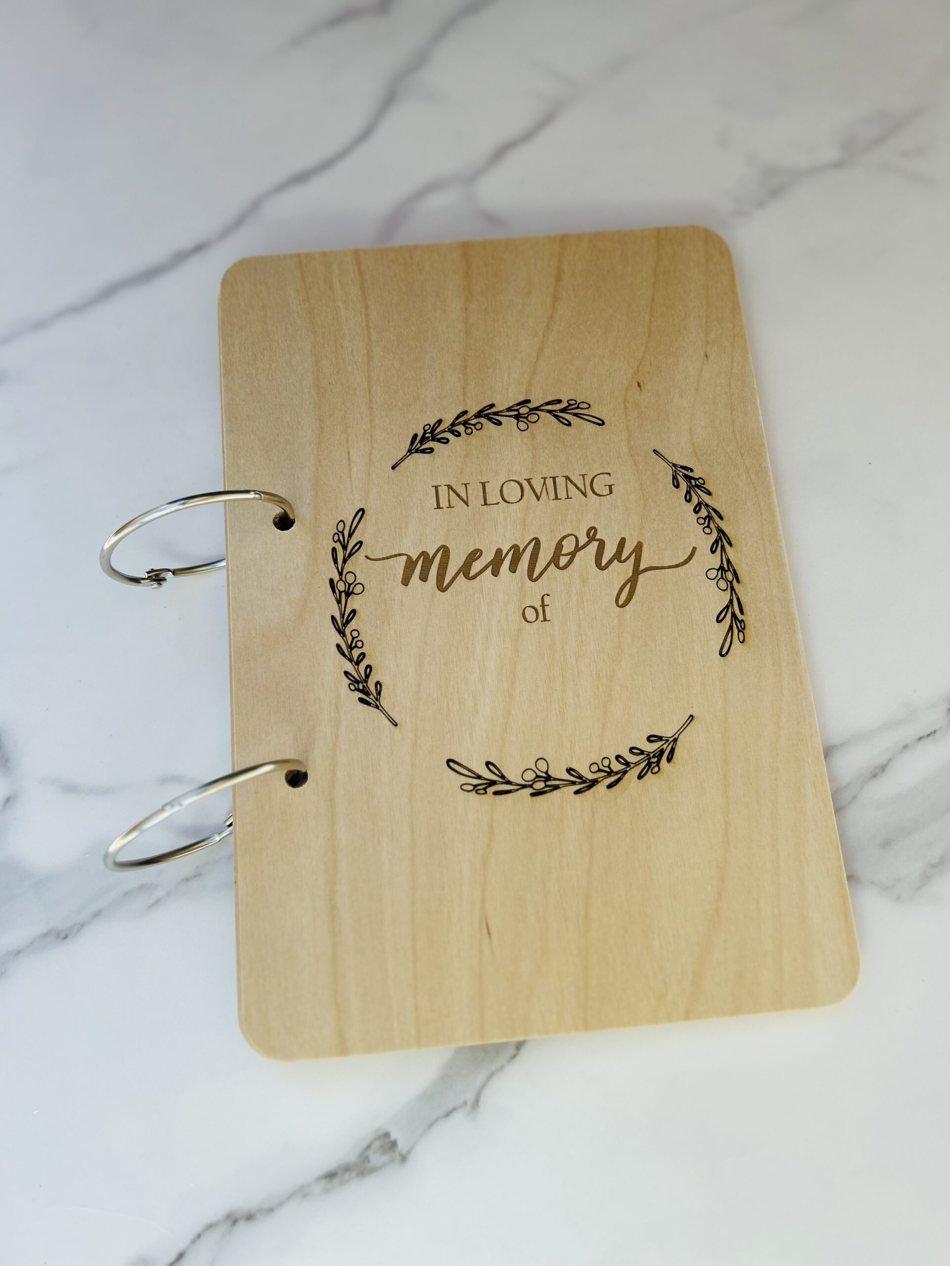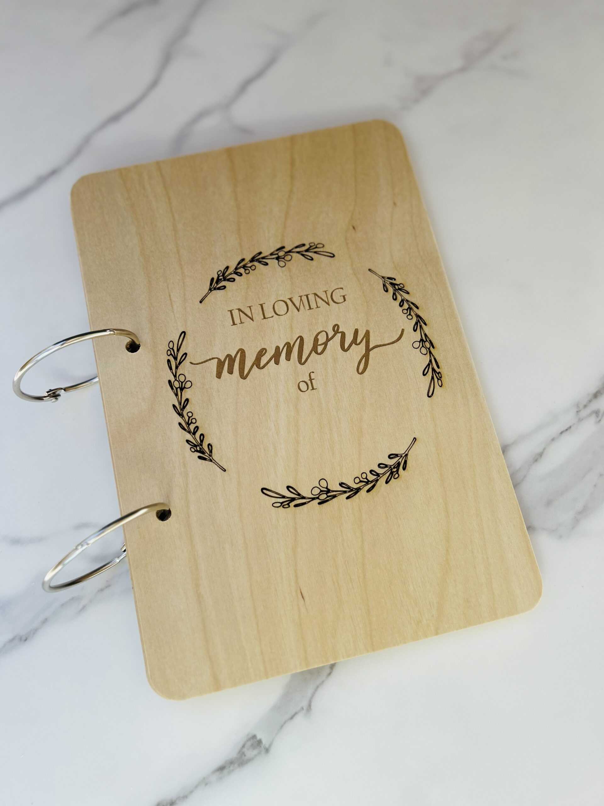 The sturdy wooden covers feature a clean, understated design that can be personalized with your loved one’s name, while the simple ring mechanism makes it easy to add, remove, and arrange cards, photos, and other small mementos. By giving these messages a dedicated home, you create a beautiful tribute that celebrates a life and provides a source of peace and comfort.